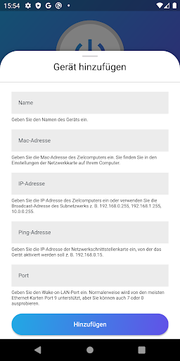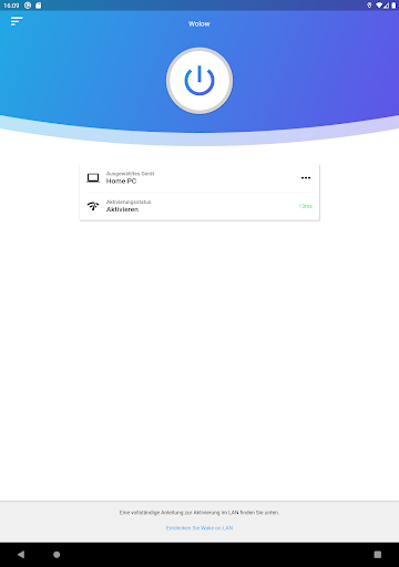 Wake-on-LAN ist ein Netzwerkprotokoll, das von den meisten verfügbaren Ethernet-Karten unterstützt wird. Stellen Sie vor der Verwendung der App sicher, dass Ihr Computer für die Verwendung des Wake-on-LAN-Protokolls konfiguriert ist. Eine Anleitung zum Einrichten Ihres Computers finden Sie unten in der App.
