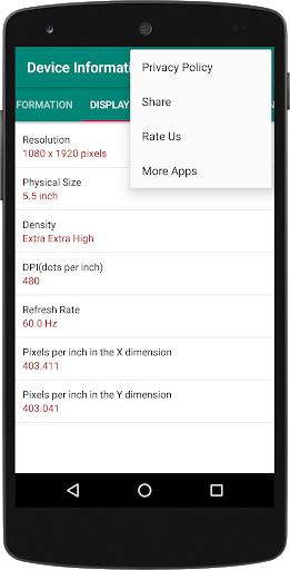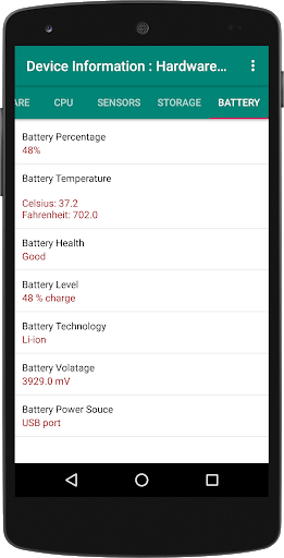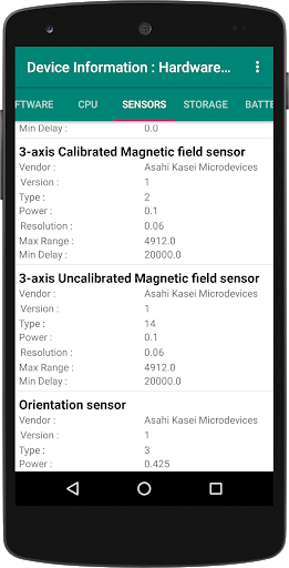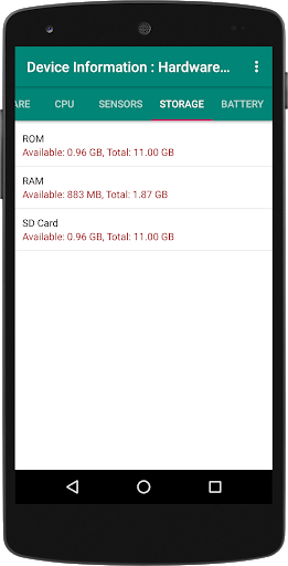 Device Information System Info for Android is capable of showing various information for phones, tablets, including: