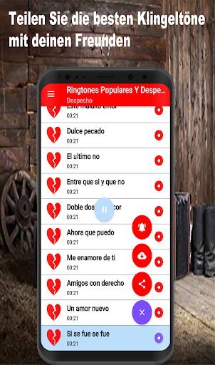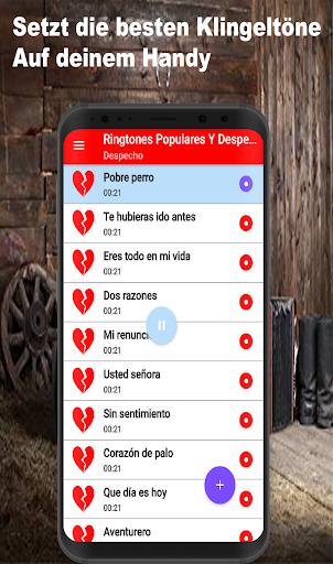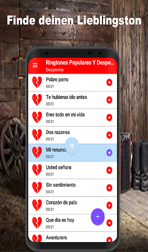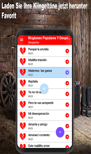 Laden Sie jetzt die besten Despecho-Klingeltöne für Ihr Handy in dieser beliebten Musikanwendung 2021 herunter, in der Sie das Beste aus kostenloser Cantina-Musik und kostenlosen Heartbreak-Songs finden. In dieser App finden Sie Guasca-Töne für WhatsApp, Sounds für trotzige Rancheras-Songs Töne für Anrufe, in denen Sie Originaltöne für Mobiltelefone einstellen können.