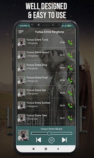 Laden Sie Yunus Emre Ringtones App mit allen original türkischen MP3-Klingeltönen herunter. Set ertugrul Meldung Klingeltöne auf einem Klick, der als Button eingestellt ist. Einfach zu bedienen Yunus Emre Call Ringtone App für alle. Die besten Klingeltöne für Android.