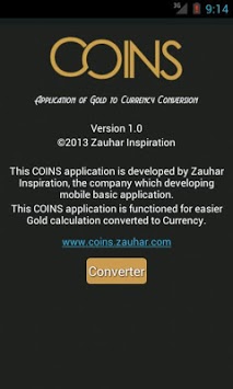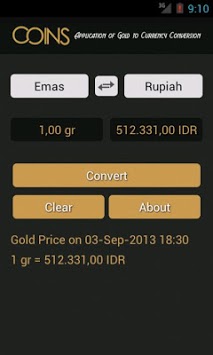 This COINS application is functioned for easier Gold calculation converted to Currency.