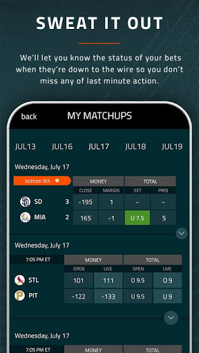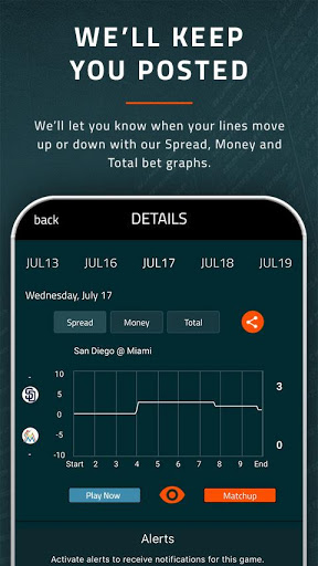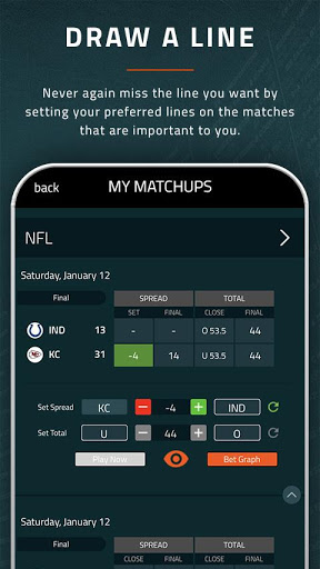 Zeichnen Sie eine Linie - Verpassen Sie niemals die Linie, die Sie möchten, indem Sie benutzerdefinierte Linien auf den Spielen setzen sind für dich wichtig. Stellen Sie Ihre Zeilen für Spreads, Moneylines und Summen ein.