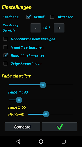 - Visuelles oder akustisches Feedback wenn Winkel gleich 0° ist (optional)