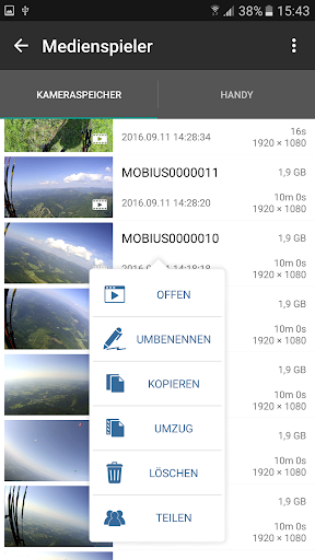 Unterstützte Kameras sind Mobius ActionCam, Mobius 2, Mobius Mini und 808#16.