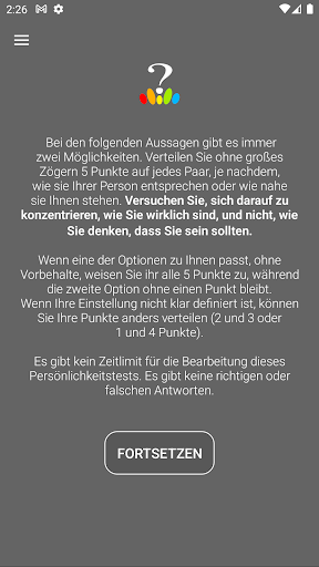 Bei diesem Test handelt es sich um einen introspektiven Fragebogen zur Selbsteinschätzung mit dem Ziel, unterschiedliche psychologische Präferenzen in Bezug auf die Art und Weise, wie Menschen die Welt um sich herum wahrnehmen und Entscheidungen treffen, aufzuzeigen.