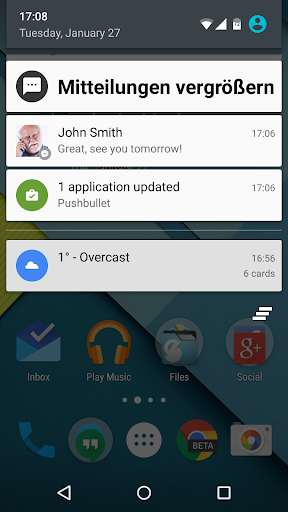 ✓ Vergrößerte Benachrichtigungsaktionen können direkt ohne Öffnen der Original-App genutzt werden