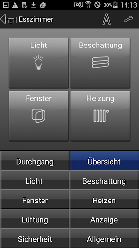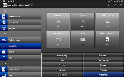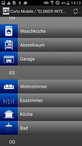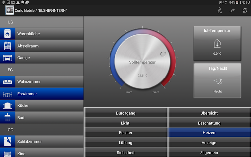Mit der Corlo Mobile App können alle Bildschirm-Funktionen des Corlo Touch KNX WL auch vom Smartphone oder Tablet-PC aus genutzt werden. Beispielsweise lassen sich Einstellungen anpassen, Statusabfragen vornehmen und Geräte und Antriebe manuell bedienen.