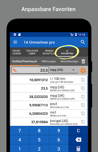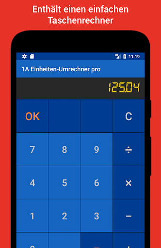 Enthält einen Taschenrechner für die 4 Grundrechenarten! So können eigene Berechnungen direkt in andere Einheiten konvertiert werden.