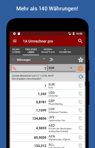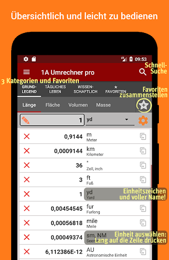 Diese einzigartige App enthält Einheiten in 42 Kategorien. Sie ist das Schweizer Messer für alle Gelegenheiten - für den täglichen Bedarf, das Studium und die Arbeit: