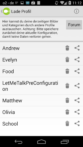 ✔ Laden und speichern des derzeitigen Profiles (Wortschatz)