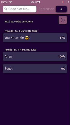 Sitzungen können benannt werden (Z.b Familie, Freunde, Beste Freundin, Arbeitskollegen) damit du weißt welche Art von Fragen du hinterlegt hast.