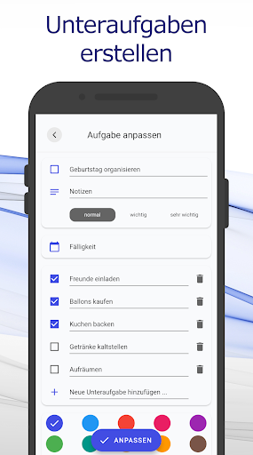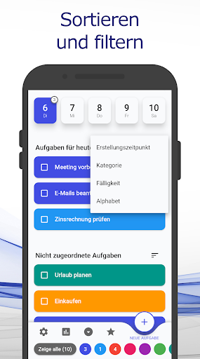 Zusätzlich kannst du deiner ToDo Liste auch Notizen hinzufügen. Unser ansprechendes, farbliches Codierungs-Schema ermöglicht es dir, deine Aufgaben Kategorien zuzuordnen. Außerdem kannst du Deadlines definieren, um keine Abgaben mehr in der Schule, dem Studium oder der Arbeit zu verpassen.