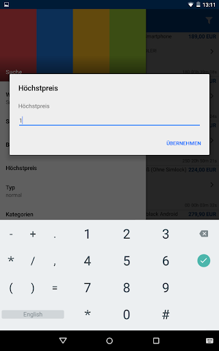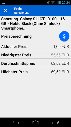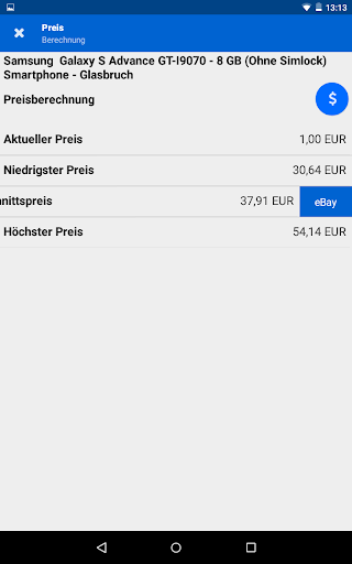 Preisberechnung zur Ermittlung des aktuellen Durchschnittspreises, des höchsten und niedrigsten Preises aktueller Produkte bei eBay.