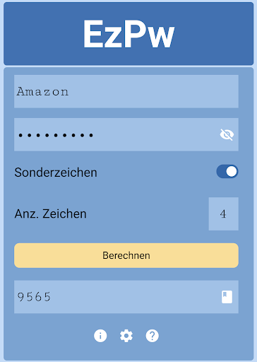 Um im Internet sicher unterwegs zu sein müssen alle Accounts mit Passwörtern gesichert werden. Diese sollten sich nach Möglichkeit bei jedem Benutzerkonto unterscheiden. Aus diesem Grund haben wir den ersten Passwort Generator erstellt, der nicht nur Passwörter generiert, sondern bei dem die generierten Passwörter jederzeit wieder abgerufen werden können, ohne diese zu abzuspeichern. Bei diesem Passwortgenerator dreht sich alles NUR um Passwörter, Benutzernamen oder sonstige persönliche Daten bleiben absichtlich außen vor. Das erhöht sowohl die Sicherheit als auch das Vertrauen. "EzPw - Easy Password" funktioniert überall, auch komplett ohne Internetverbindung.