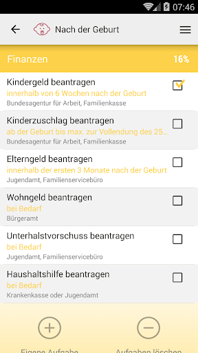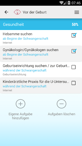 - Eigene Aufgaben können hinzugefügt werden.