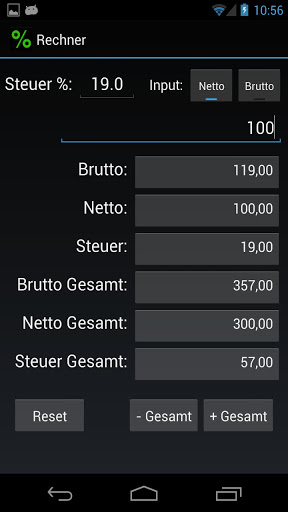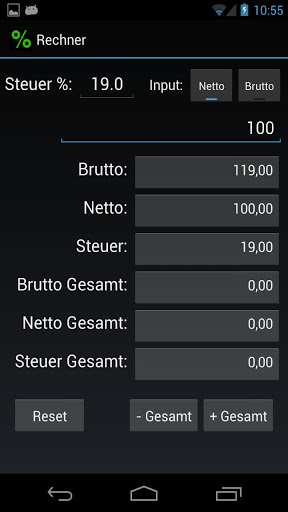 Einfacher Steuerrechner (target android 4.x)