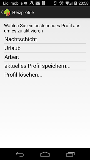 * Speichern und Wiederherstellen von verschiedenen Heizprofile
