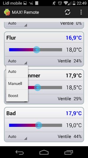 * Wechsel zwischen Auto, Manuell und Boost pro Raum
