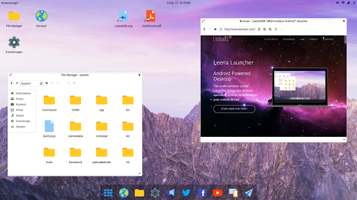 Der Multi-Window Leena Launcher (BETA) bringt das Desktop-Betriebssystemerlebnis in Ihrem Android-Gerät, indem er Android mit einer nativen Desktop-Benutzeroberfläche erweitert. Es ist nicht wirklich ein "OS" anders, aber wir arbeiten hart, das sich wie eins anfühlt;)