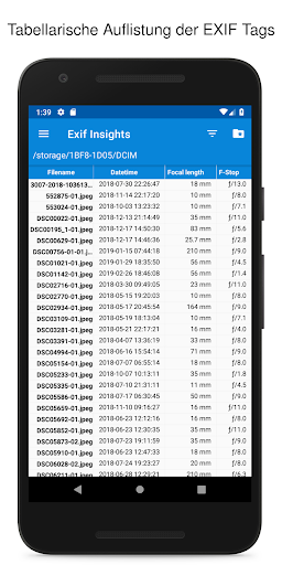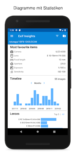 Die meisten modernen Kameras speichern EXIF Daten in den JPEG oder RAW Dateien. Die Tags enthalten Informationen wie die Belichtungszeit, die Brennweite order das Kameramodell das du benutzt hast. Diese App zeigt dir diese Daten in Grafiken, als Tabelle oder als Kartenansicht an.