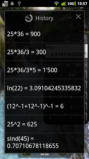 Wenn Sie auf das Berechnungsfenster tippen erscheint ein Verlauf mit allen Ihren Berechnungen.