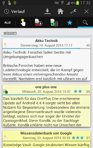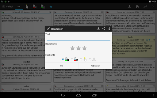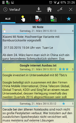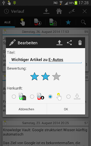 Man kann in der Datenbank die Artikel/Texte bewerten, mit einem Titel versehen und auch weiterleiten.