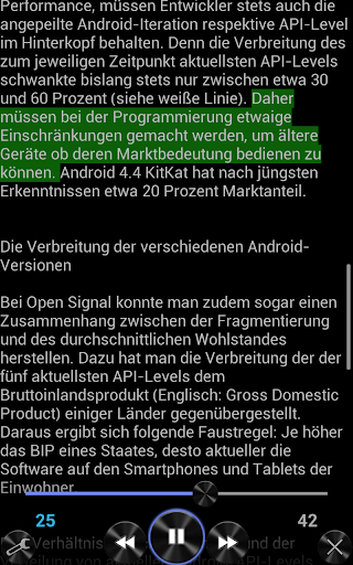 Die Vorleser App kann jeden Text lesen, den Sie auf Ihrem Android Handy markieren können (langer Tipp auf Text)!