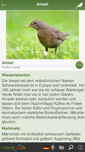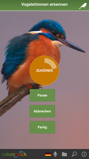 zu 1. Halten Sie Ihr mobiles Endgerät in die Richtung der Vogelstimme. Drücken Sie auf den Button Aufnahme. Nehmen Sie die Stimme 10 bis 30 Sekunden auf. Dann erscheint der Name des Vogels oder der Vögel. Sie erhalten ausführliche Informationen mit Bild und Stimme. Internetanschluss nötig.