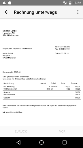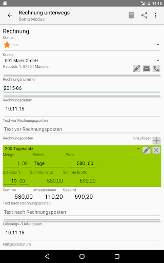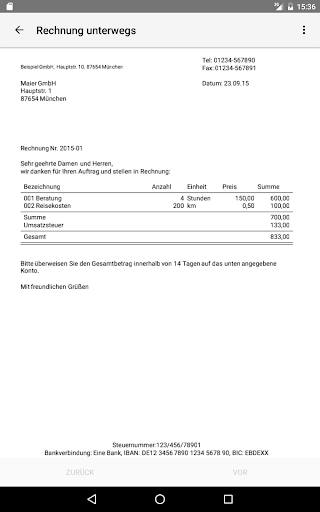 • Bitte anrufen: Hat der Kunde noch nicht bezahlt, könnten Sie mal telefonisch nachfragen. Durch Tippen auf das Telefonsymbol in der Rechnung wählt das Gerät seine Nummer.