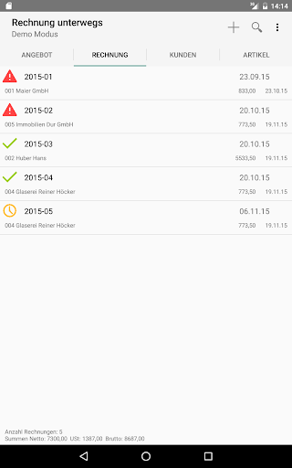 Finden Sie Angebote, Rechnungen, Kunden bzw. Artikel auf vielfältige Weise. Durch Suche nach: