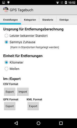 Sie können in den Formaten CSV, KML und GPX gespeichert werden.