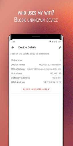 Wi-Fic Thief Detector 2.0 ist ein leistungsstarkes Werkzeug, um herauszufinden, wer in meinem Netzwerk ist.Verwenden Sie Ihr Telefon, um zu überprüfen, wer mein Wi-Fi verwendet.Nur mit einem einfachen Button scannt es Wi-Fi mit dem besten integrierten WLAN-Scanner.Sie erhalten eine Liste aller Wi-Fi-Benutzer.Diese App wird Ihnen helfen, WIFI-Hacker loszuwerden.