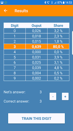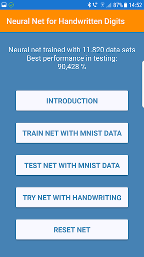 Mit dieser App können Sie ein neuronales Netz für handgeschriebene Ziffern (0...9) trainieren und testen.