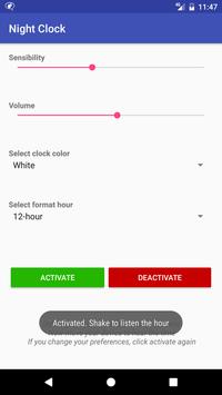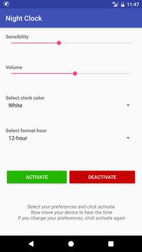 With Night Speaking Clock, you don't need to open your eyes to see the time. Just shake you phone or tablet and listen. The clock will speak.