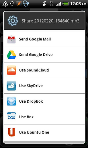 - Teile Aufnahmen via Google Drive, Skydrive, DropBox, Box, ...