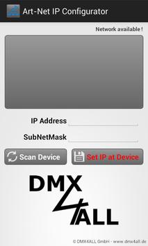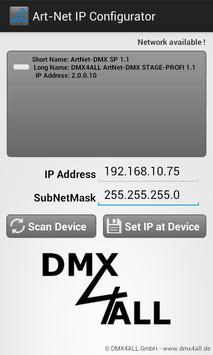 Der Art-Net IP-Configurator ermöglicht die Einstellung der IP-Adresse und der SubnetMask von beliebigen Art-Net Geräten (*).