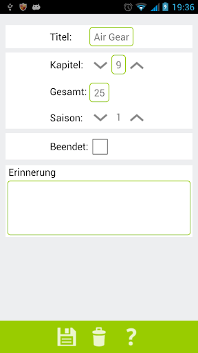 Dank der Fortschrittsbalken sehen Sie, wie viele zur Fertigstellung der Serie Kapitel, sobald Sie das getan haben, markieren Sie das Kästchen "fertig" und in die Liste mit dem gleichen Namen hinterlassen. Darüber hinaus haben Sie ein Textfeld, in dem Sie eine Erinnerung des Kapitels oder der gesamten Serie zu schreiben.