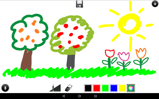 This app has a panel with a tool box that allow to the children change colours and pencil and rubber thickness. Children can enhance their creativity trough paint with fingers. Besides, the children can describe the drawing with his/her voice when they push microphone button. By last, the drawings can be saved for seeing after in the gallery.
