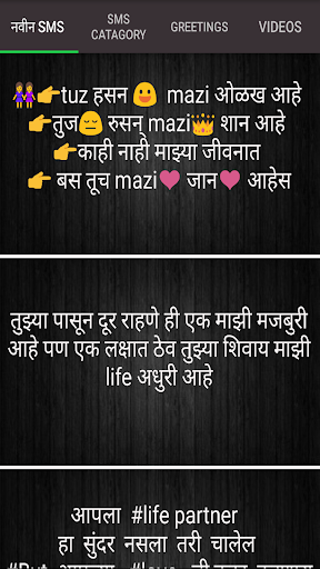 Get a daily latest Marathi Message to share with your friend friends from Marathi huge Collection. Huge collection of latest SMS, Messages, quotes & latest jokes with lots of categories for android phones!! With Support of Offline & FREE of all SMS collections having daily auto-updates!!