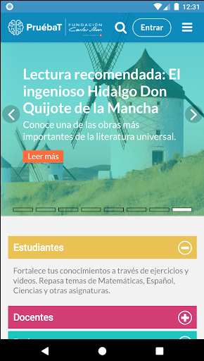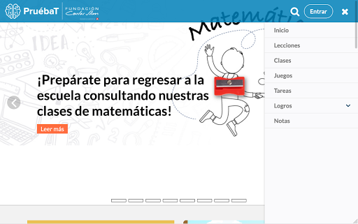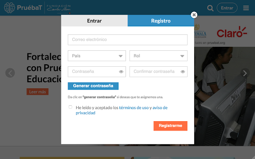 Pruébat ist eine Online-Plattform, die von der Carlos Slim Foundation entwickelt wurde, deren Ziel es ist, kostenlos, Lernerfahrungen an Studenten, Lehrer und Eltern bereitzustellen, um Wissen und Fähigkeiten für das Leben in der gesamten Leben zu stärken.
