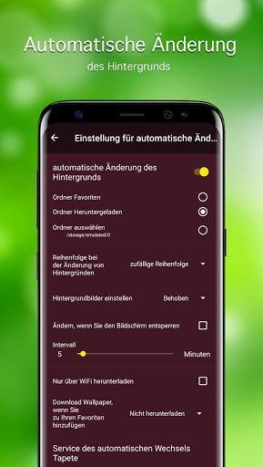• Automatische Hintergrundänderung mit dem angegebenen Intervall (Live-Wallpaper)
