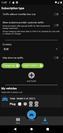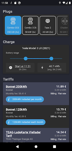 - Verfügbare Tarife bei allen Ladestationen