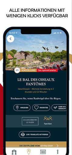 Die Puy du Fou France App ist in 5 Sprachen verfügbar: Französisch, Englisch, Spanisch, Deutsch und Niederländisch.