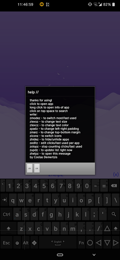 Ein einfacher Launcher, der die meisten / zuletzt verwendeten Apps oben leert, können Sie durch Klicken auf Top / Bottom Padding (Clear Leerzeichen) oder auf die Suche suchen, um Apps zu öffnen, oder klicken Sie, um die Informationen der Apps zu öffnen.