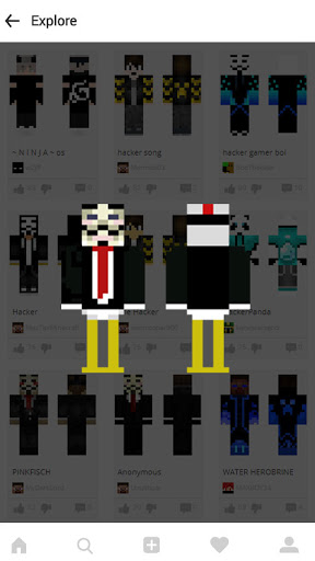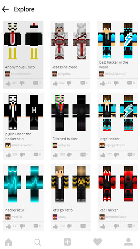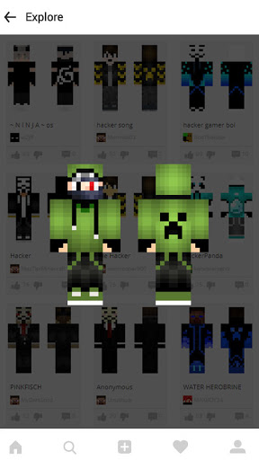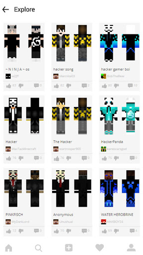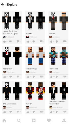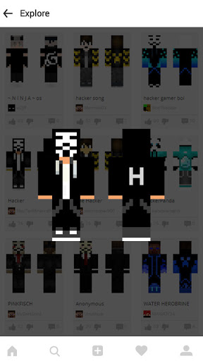 Hacker Skins für Minecraft Pe ist eine erstaunliche Haut-App. Hier können Sie viele Skins von Minecraft-Benutzernamen erhalten. Laden Sie Hacker-Skins kostenlos herunter und anwenden Sie alle kostenlos!