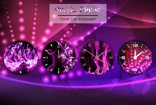 Purple Flame Clock Live Wallpaper helps to decorate your home screen with analog clock with different backgrounds.