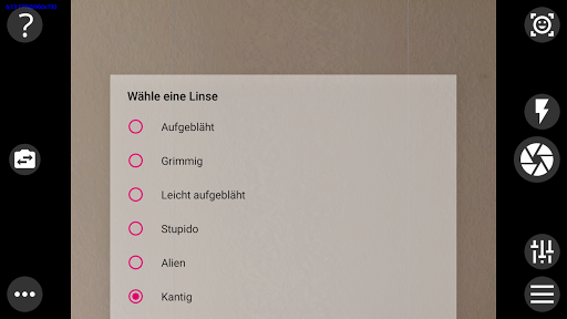 FaceLenses wurde an der Hochschule für Telekommunikation Leipzig von Studenten entwickelt. Mit FaceLenses kannst Du Fotos von Deinen Freunden machen, wobei ein ausgewählter Effekt zum Verfremden des Bildes gleich live in der Vorschau angezeigt wird. Auch Selfies sind möglich, wenn eine Frontkamera vorhanden ist. Die Effekte sind über ein Menü auswählbar und können durch verschiedene Parameter variiert werden.
