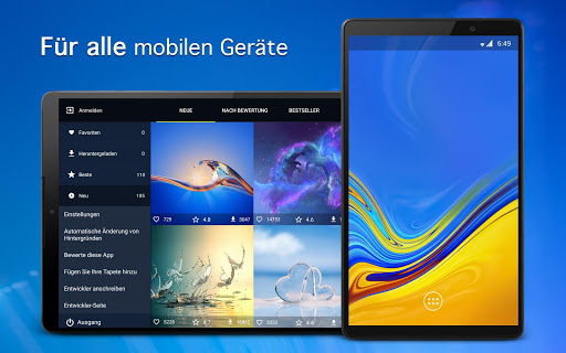 Nachdem Sie ein Bild gewählt haben, können Sie es herunterladen, zu Favoriten hinzufügen oder sofort als Hintergrundbild auf Ihr Handtelefon oder Tablet installieren. Alle Bilder können auf den Sperrbildschirm installiert werden.