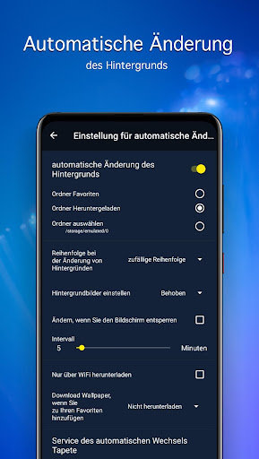 • Automatische Hintergrundänderung mit dem angegebenen Intervall (Live-Wallpaper)