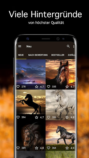 Nachdem Sie ein Bild gewählt haben, können Sie es herunterladen, zu Favoriten hinzufügen oder sofort als Hintergrundbild auf Ihr Handtelefon oder Tablet installieren. Alle Pferde Bilder können auf den Sperrbildschirm installiert werden.